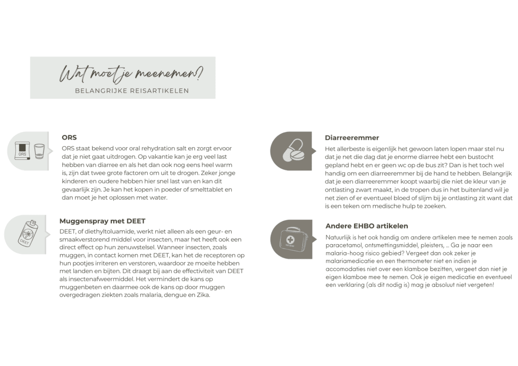 *Reisvaccinaties zijn persoonsgebonden en afhankelijk van je gezondheidstoestand. Op deze pagina vind je algemene info maar voor meer details voor je eigen situatie en reis, vraag voor meer informatie bij uw huisarts of ga langs bij de tropenkliniek in het ziekenhuis.
