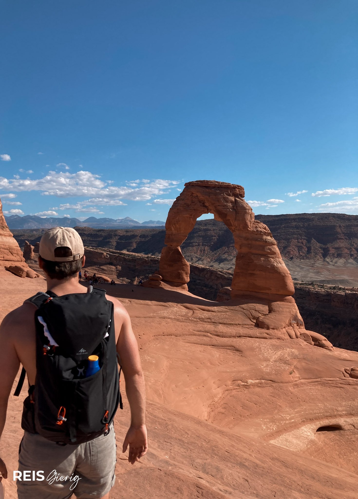 De bekendste wandeling is die naar de iconische Delicate Arch, het symbool van Utah dat je ook op alle nummerplaten terugziet. De hike is ongeveer 5 km heen en terug en stijgt flink, zonder schaduw, dus neem zeker voldoende water, zonnebescherming en stevige schoenen mee. Wie liever iets rustiger aan doet, kan ook naar The Windows of Double Arch rijden.
