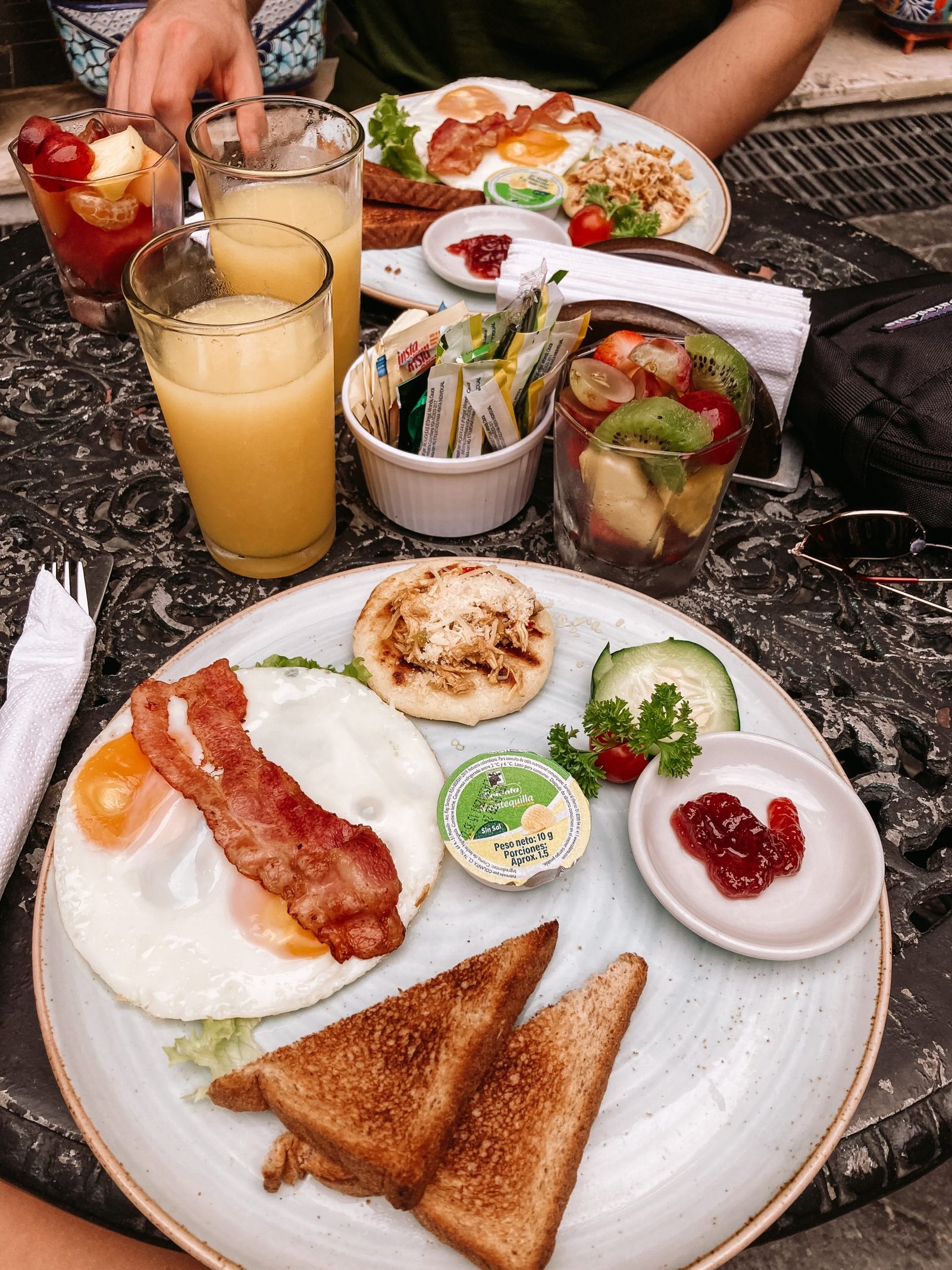 Ik ben een enorme liefhebber van een goed en stevig ontbijt, dit ontbrak soms in Colombia. In elk hotel ga je bijna altijd soortgelijk ontbijt krijgen en dat is dus geen luxe ontbijtbuffet zoals in Thailand. Je moet dus opzoek gaan naar hotels waarbij het ontbijt goed staat aangeschreven. In Colombia is het vaak roerei of een gebakken ei met een wat brood en/of een arepa. Vaak zit daar ook een beetje watermeloen bij. Pannenkoeken of wafels kennen ze niet allemaal. Met uitzondering het Rango hotel in Medellin die hadden namelijk een FANTASTISCH ontbijt met lekkere american pancakes, smoothie bowls, broodjes met avocado,… Puur genieten!
