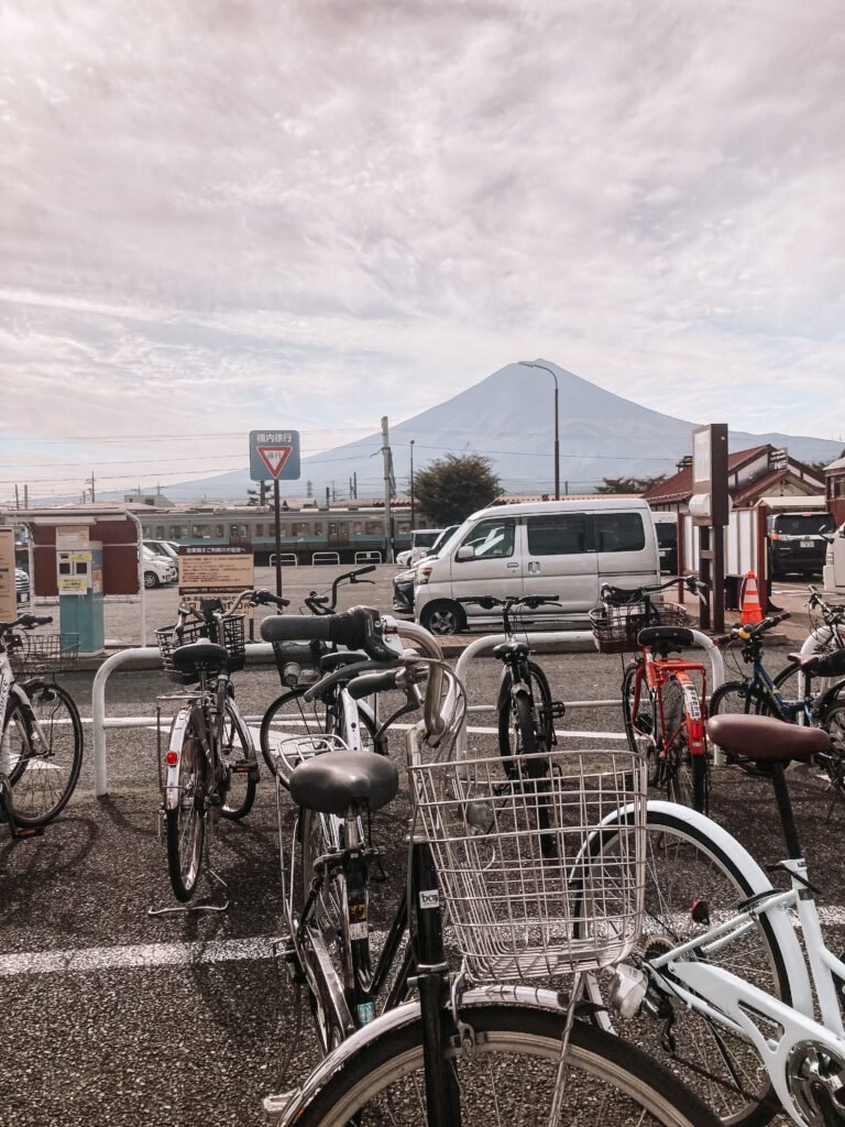 Bij Kawaguchiko Station heb je ook de mogelijkheid om fietsen te huren. Hoewel wij dit zelf niet hebben uitgeprobeerd, lijkt het ons een superleuke en handige manier (mijn broer heeft dit gedaan) om het gebied rond Mount Fuji te verkennen. Met de fiets ben je flexibel, kun je op je eigen tempo rijden en kom je op plekjes waar de bussen misschien niet stoppen. Zeker op een mooie dag is het vast heerlijk om langs het meer te fietsen met uitzicht op de iconische berg.