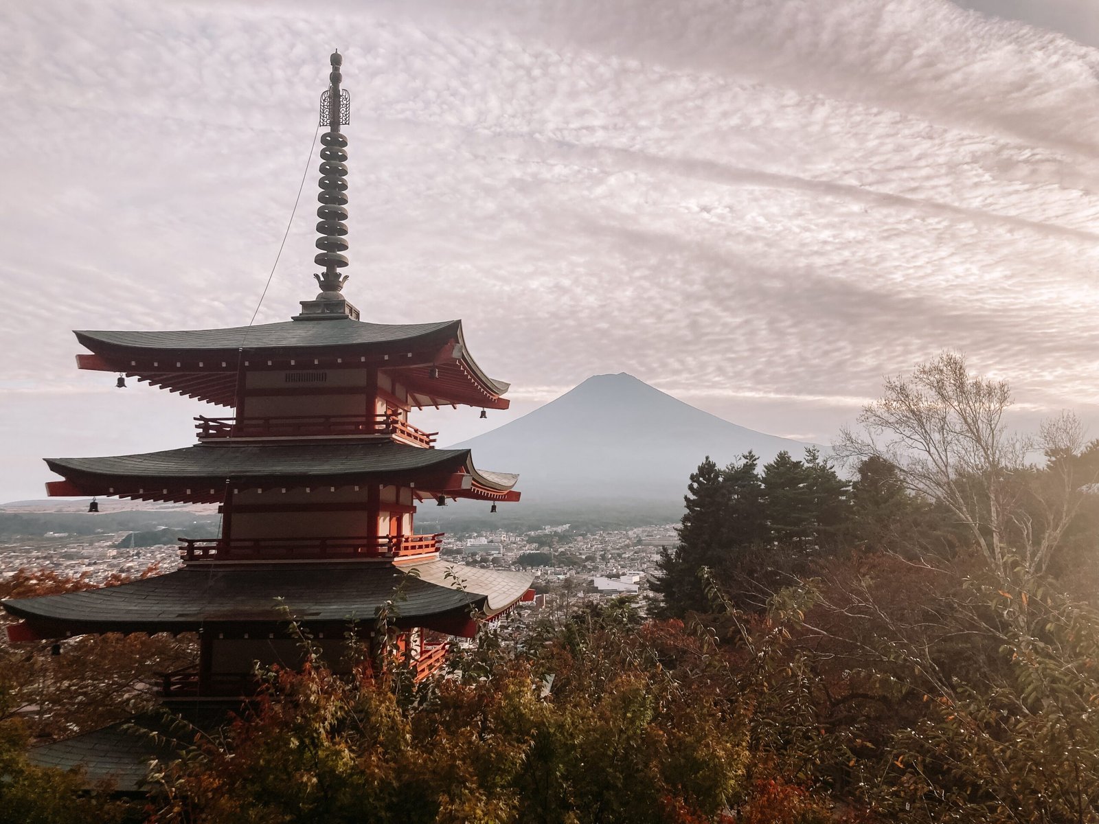 Gelukkig zat in dat dure toeristenbusticket wél nog een treinkaartje inbegrepen waarmee we naar de beroemde Chureito Pagoda konden reizen. Dat maakte het een klein beetje goed, maar het gevoel dat we onnodig veel geld hadden uitgegeven, bleef wel hangen.