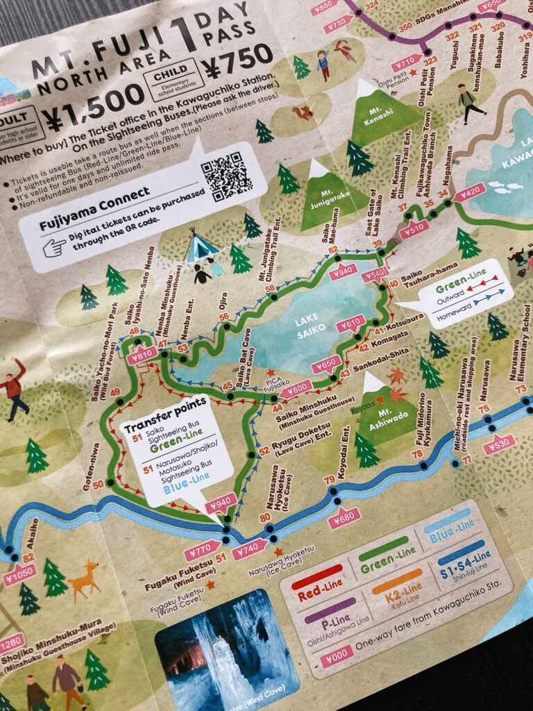 Kortom: stap je uit op Kawaguchiko Station, maak dan een foto van de buskaart of neem hem gewoon mee, met prijzen, bedenk waar je naartoe wilt, en betaal gewoon met je Suica-kaart. Zo bespaar je niet alleen geld, maar ook een hoop frustratie. En geloof me, dat geld besteed je veel liever aan een warme kom ramen na een lange wandeling!