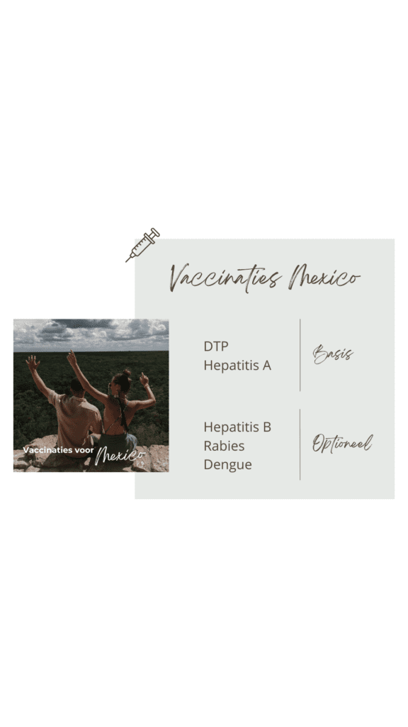 Als je naar Mexico reist, is het belangrijk om vooraf na te denken over de nodige vaccinaties. De basisvaccinaties die worden aangeraden zijn DTP (difterie, tetanus en polio) en hepatitis A. Deze bieden voldoende bescherming voor een gewone toeristische reis, bijvoorbeeld naar Yucatán. Toch zijn er situaties waarin aanvullende vaccinaties verstandig kunnen zijn.