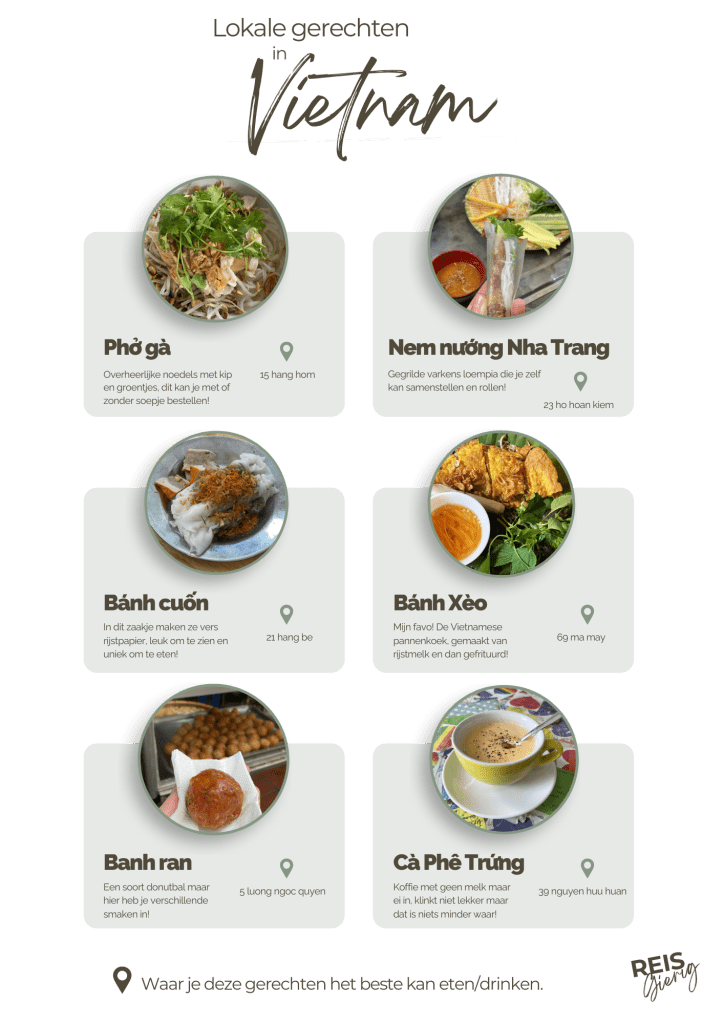 Ben je een alles-eter of gewoon heel nieuwsgierig naar de Vietnamese keuken? Ik raadt iedereen aan om in het begin bij zijn of haar reis mee te gaan op een streetfoodtour in Hanoi, je gaat er nog heel je reis plezier van hebben! Een aanrader!