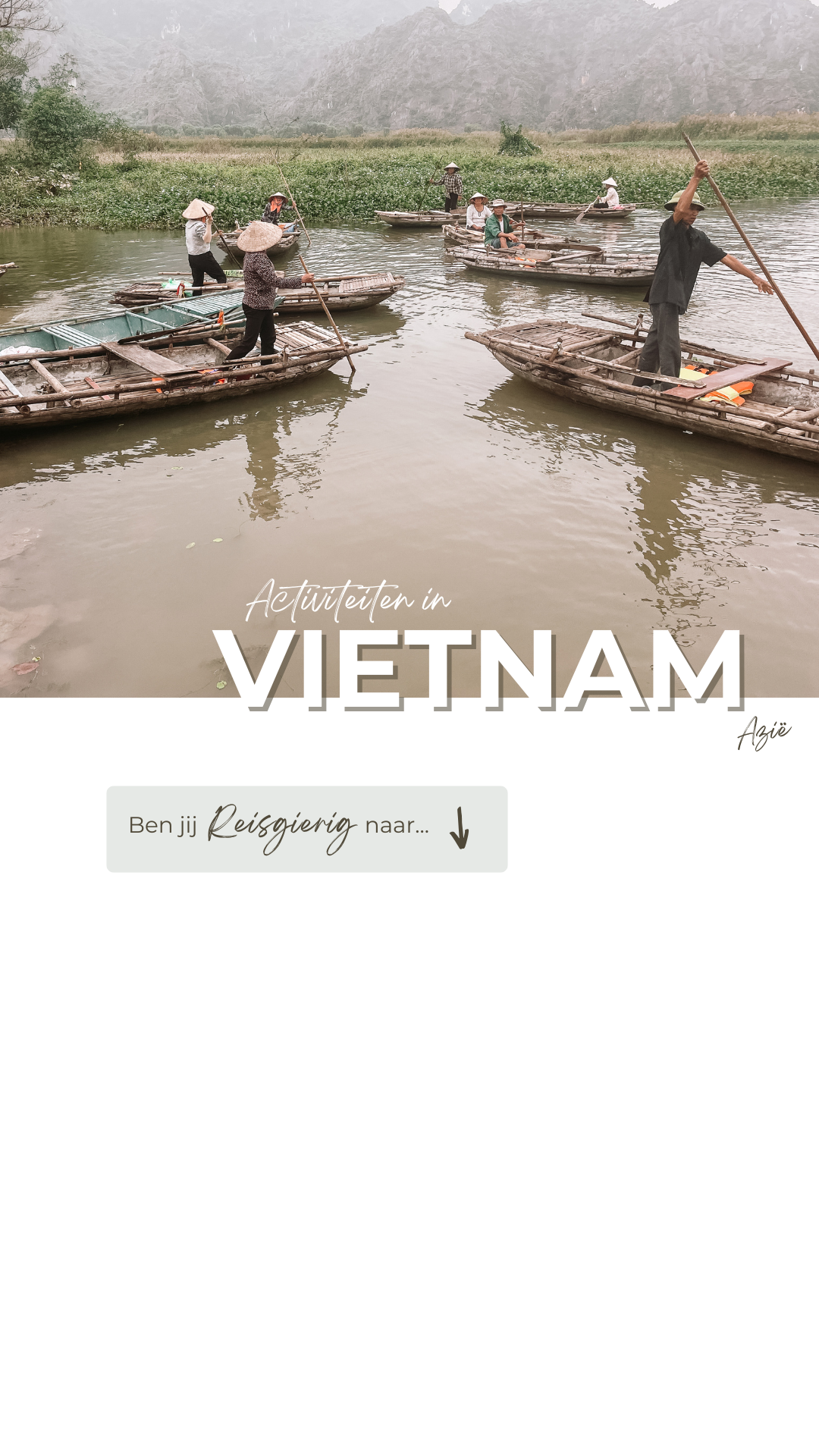 Vietnam, een land vol avontuur, cultuur en natuurlijke schoonheid! Of je nu een liefhebber bent van bruisende steden, adembenemende landschappen of rijke geschiedenis, Vietnam heeft voor ieder wat wils. Jong of oud, fit of sloom, iedereen is welkom! Hier zijn enkele van de vele activiteiten die je kunt beleven tijdens je reis door dit prachtige land per regio: