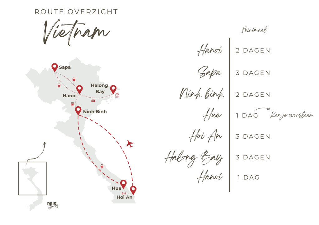Op deze reispagina neem ik jullie mee naar het Noorden/Midden van Vietnam. Van levendige straten in Hanoi, betoverende lampionnen in Hoi An, magische cruisetochten doorheen Halong Bay tot pittige trektochten in de bergen van Sapa. Als ik hier zo over terugdenk, denk ik onmiddellijk wat een prachtige en unieke reis was me dit zeg! Vietnam biedt een onvergetelijke mix van cultuur, geschiedenis en wonderlijke natuur.