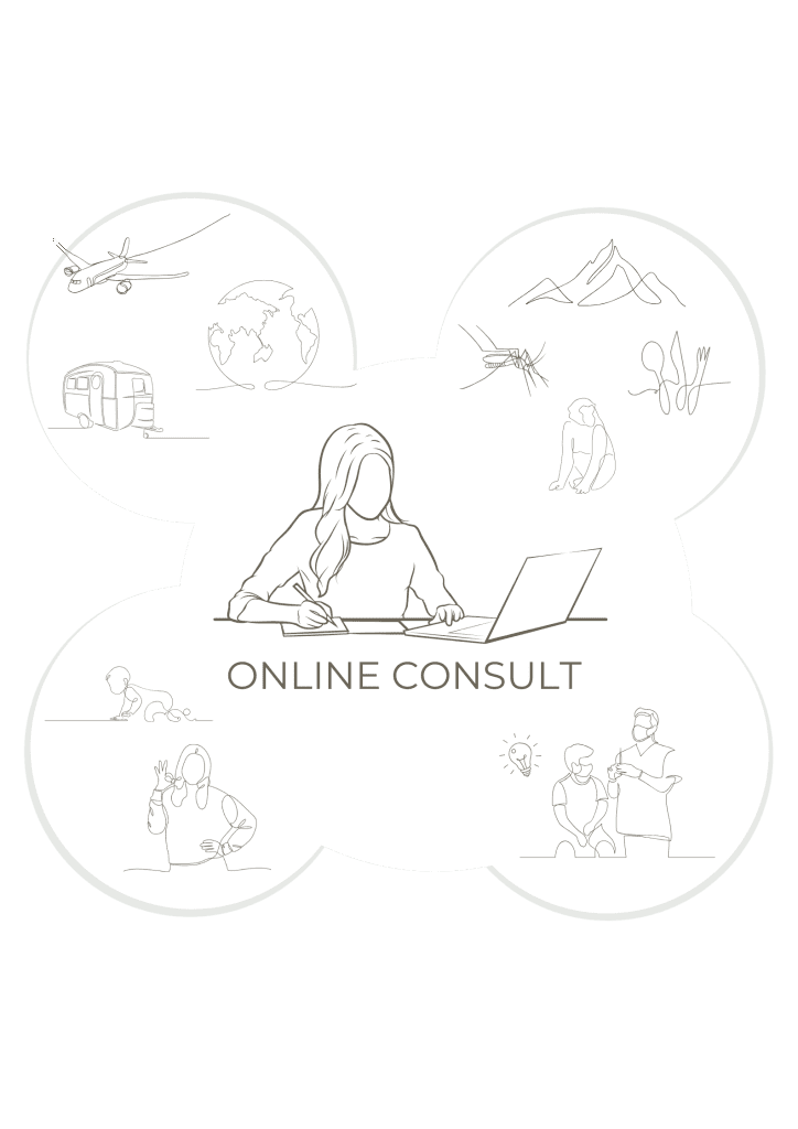 In het online consult bespreken we de gezondheidsrisico’s van jouw reis, zoals rabies, hoogteziekte, buiktyfus, muggen en hygiënemaatregelen. Zo ben je goed voorbereid en weet je waar je rekening mee moet houden.
