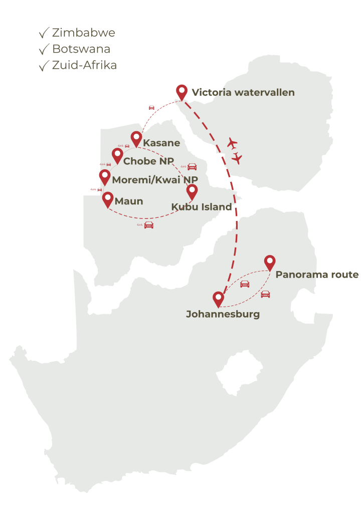 Op Reisgierig krijgt elke route een eigen unieke reiskaart. Zo zie je precies welke plekken ik in elk land heb bezocht en hoe de route in elkaar zit. Daarnaast ontdek je meteen welke vervoersmiddelen je kunt gebruiken, van bus en trein tot scooter of binnenlandse vlucht – zodat je een duidelijk overzicht hebt om zelf je reis te plannen.
